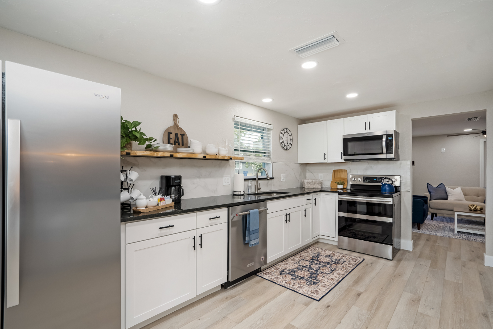 MONTHLY (30 day lease term) furnished rental. You'll enjoy entertaining in this updated kitchen with granite countertops, stainless steel appliances plus kitchen island/breakfast bar. The master bedroom offers a relaxing king bed, mirrored closet and 6 drawer dresser plus spacious private bath with his/hers sinks. The two guest bedrooms offer 1 set of bunk beds and a queen bed. Plenty of space for storage, 1 car garage plus carport area and new roof! Huge lot for plenty outside activities with family and friends. This property is located next to many local favorites. The Ellenton outlet mall, many state parks, loads of restaurants and the beautiful Anna Maria Island. Rental rate does not include the utility amenity package ($400 monthly) or the 12% transient tax (ask if the 6 month and a day lease works as that eliminates the 12% transient tax).
